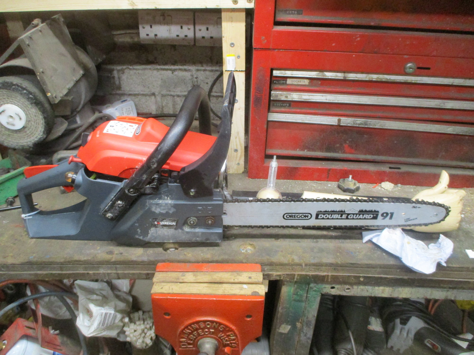 I had this, any flat surface in the garage got school/kids/PTA guff dumped on it. I discovered covering the surfaces with stackable crates ment she couldn't dump stuff there and I'd just stack them up on the floor if I needed to use my workbenchIt's a dumping ground for anything we want out of the kids way.