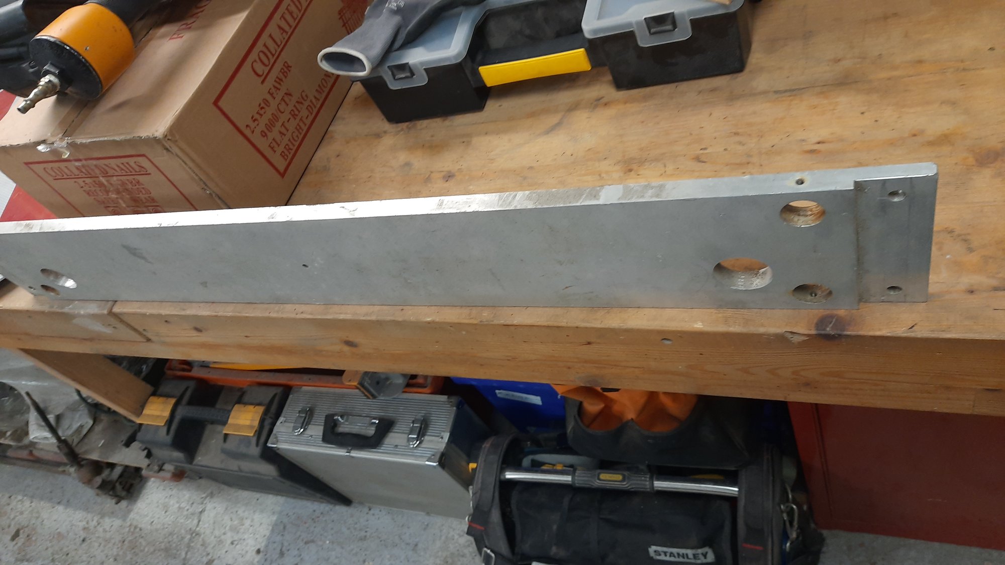 Been a busy day but i cam back with a Bostich nailer and 9000 + nails and a leg vice, nice piece of ally, big roll of plastic, some signs and a small cast iron wheel from a smashed lathe, The nailer and nails were paid for the rest was skip fished.