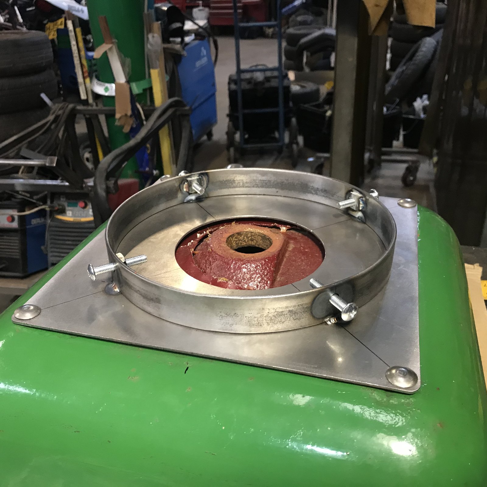 I made a slightly tidier globe mounting solution for the top of an old forecourt pump.