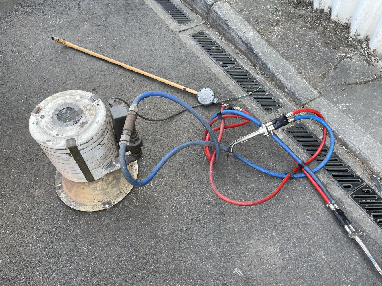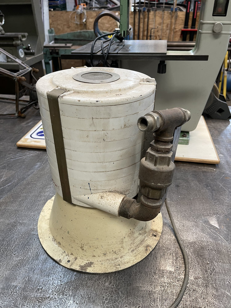 I think someone has already mentioned this but that looks like the HVLP air compressor from a Flamefast brazing setup. I have one still inside its metal case.Two of these things. I don’t really know what they are (apart for heating torches obviously), but they were part of a pewter casting setup.