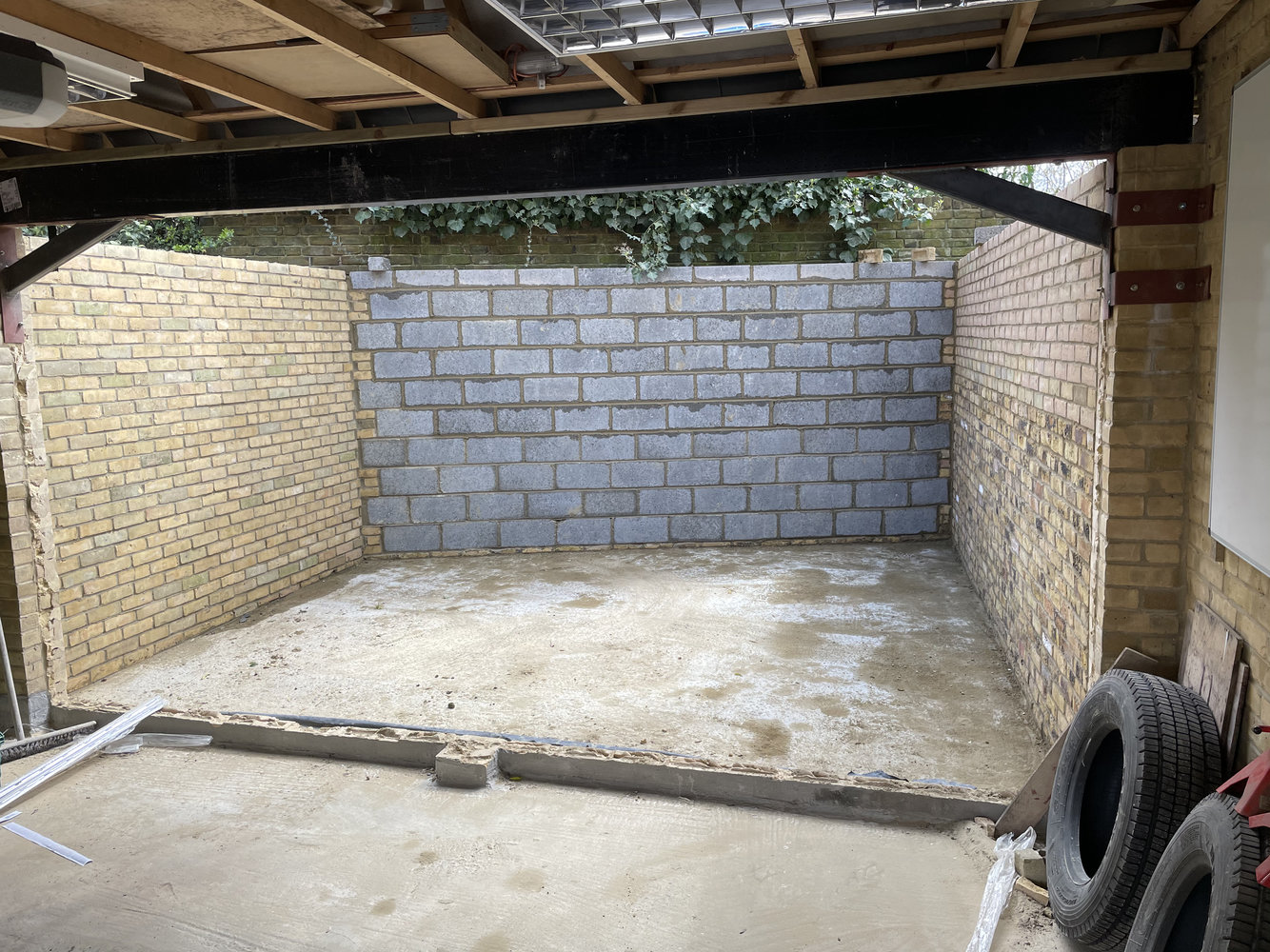 The left hand wall as you look at the picture faces my garden, so I cleaned up and re-used the bricks that came down from the original back wall so it matches in pretty well, the back wall is against the existing garden wall which is much taller so nobody can see it and the right hand wall faces the neighbours garden, theres a 6ft high fence hence using the poorly matching bricks at the bottom and the better ones nearer the top.Nice. I could easily double my (double) garage size but live in an AONB!