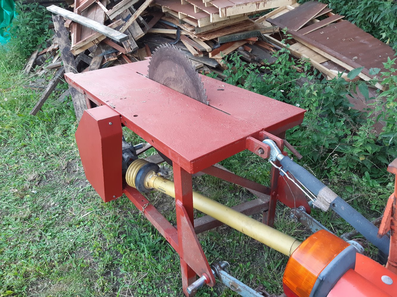 I actually got this 6 months ago but only just got it working. It's a dennings pto sawbench, it originally had the tractor at 90° to the blade but I modified it with a 90° gearbox and moved the 3pt linkage to the end., it allows access to both sides when cutting. Changed the old bronze bushes to pillow block ball bearings.View attachment 301553