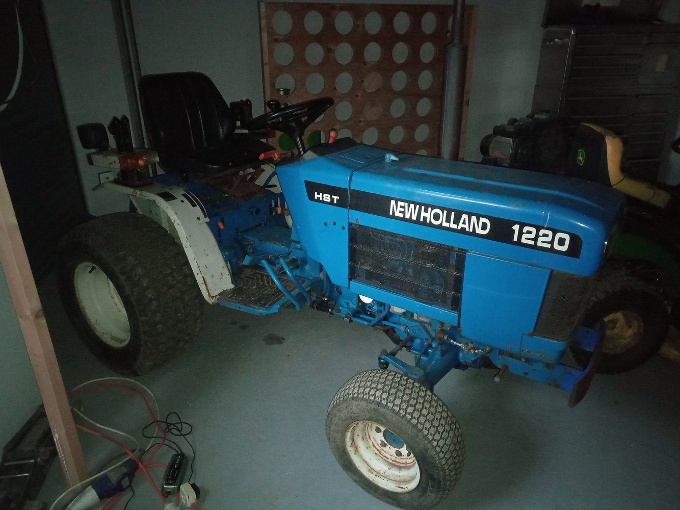 After seeing @8ob's wee tractor last time I was up in his yard and my ride on taking a hammering doing some stuff it's really not designed for I picked up this last Monday. This was it the night (well early hours of the morning) I got back after a jaunt up to Durham to collect it, and a hitch-hiker in the form of @Nomad.