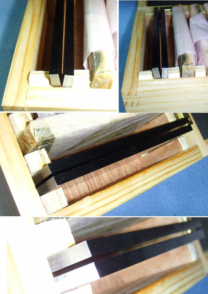 I was at a big cam grinding facility in Italy, they were doing me a favour by grinding chrome plated steel disc around 400 mm in diameter flat (by gluing it down, not pulling it down flat on magnets as it had been made) - and to check it was really flat, my mate took one of their parallels, licked it, and put it on the surface . . . it stuck . . he pronounced it flat . . . cue a mix of Italian puzzlement, horror and shock from surrounding people, from the main man down!Slip thin oiled card between the steels to stop them rattling around and prevent them " Ringing " ( sticking together ) ? We were not allowed to handle our parallels with bare hands because the acid on our hand would burn the precision grinding and make them useless .