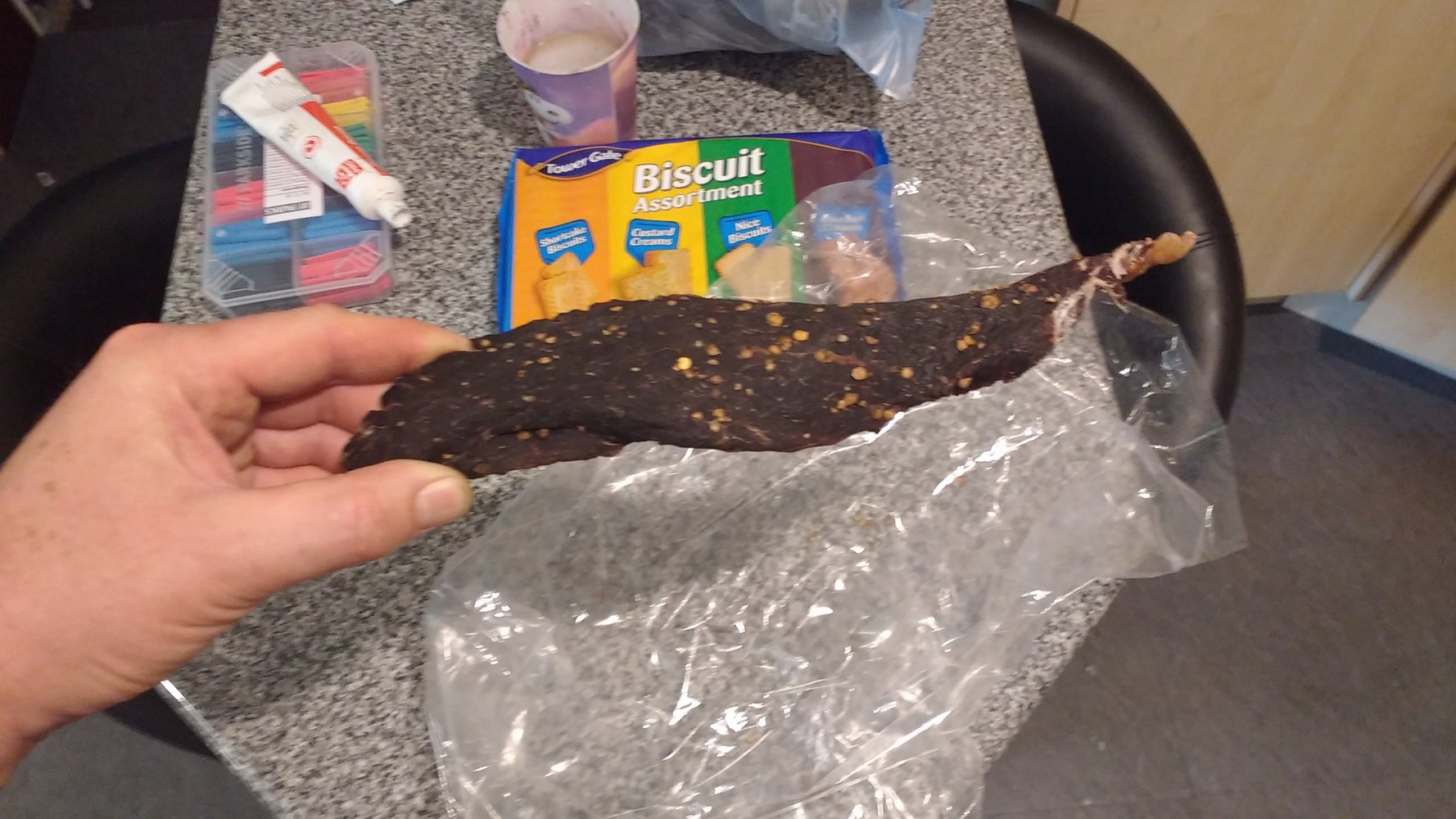 Is it beef? I thought about making it but my nan (From SA) insists it has to be "Springbok", which I'd never even heard of as an animal, let alone as meat.Took a neighbour some runner beans. He's from ZA and has just bought a smoker. Though I didn't expect anything in return he gave me some biltong he's just done.