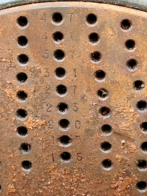 Despite the rust, the hole counts are still visible: