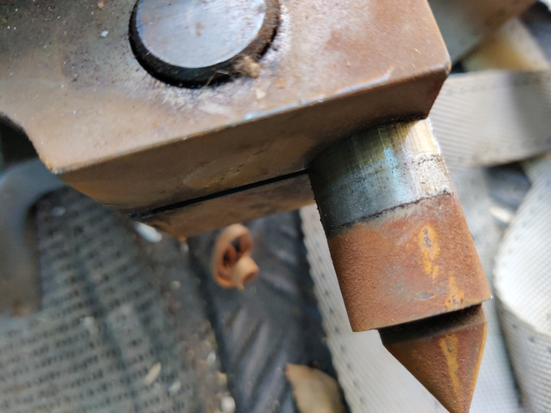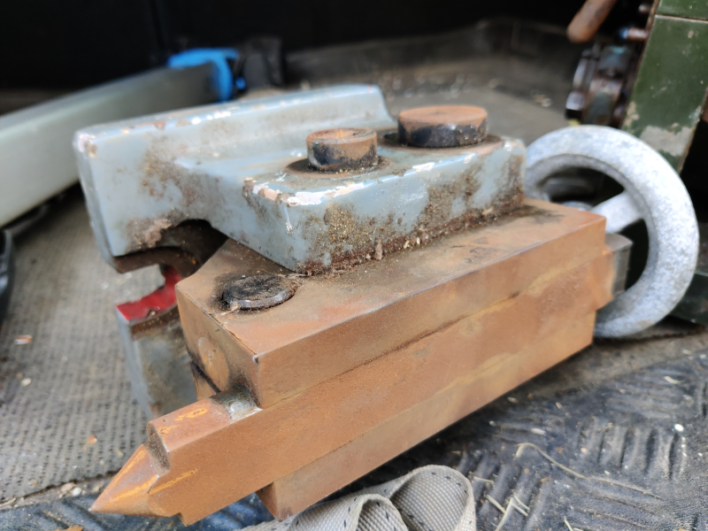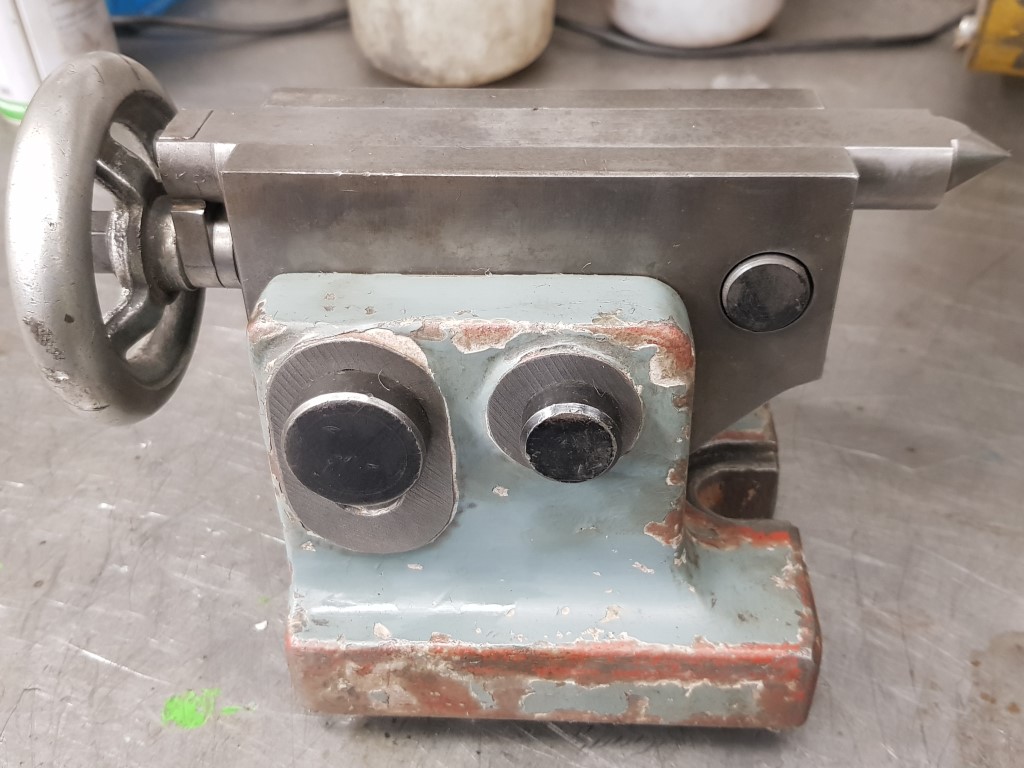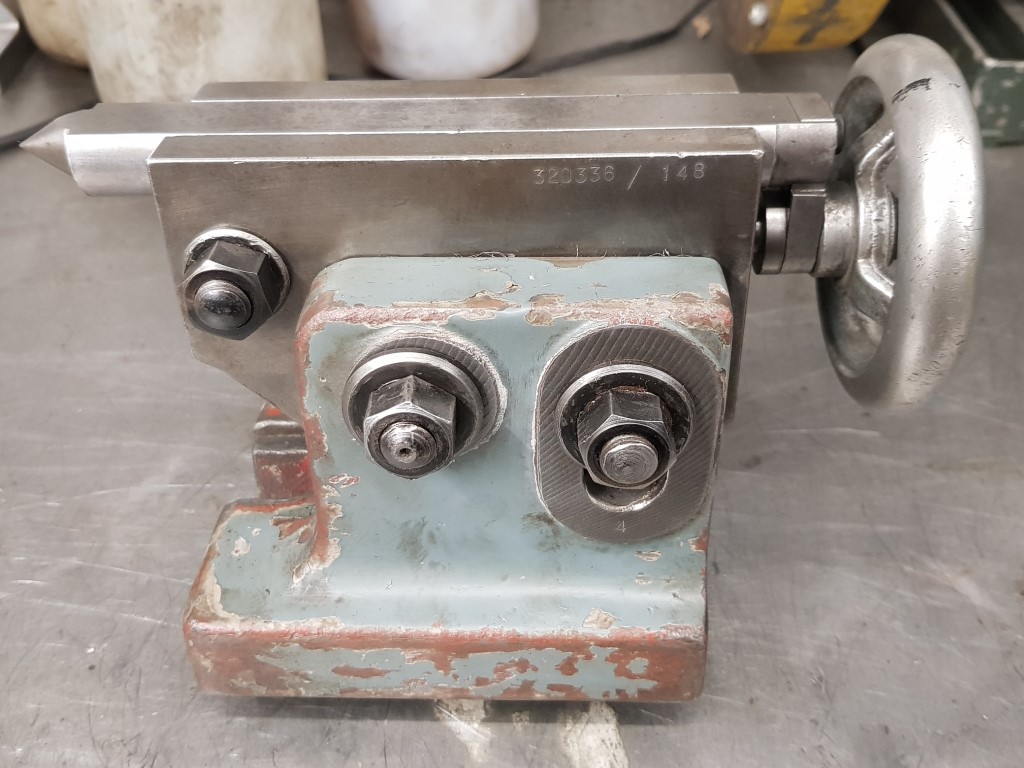 The tailstock looks to be from a completely different dividing head, but it moves smoothly despite the rust and, when the handle's turned to extend the centre a bit, the bit that wasn't exposed looks alright: