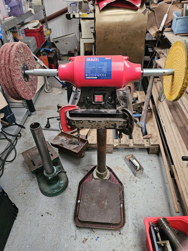 I rigged up a stand for my polisher out of an old pillar drill as it was vibrating the bench and distributing tools all over the floor.