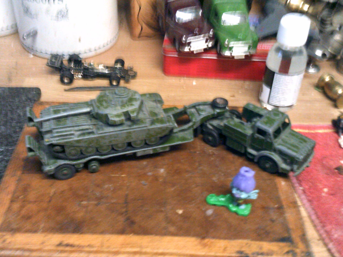 I had that tanks transporter/tank, but a big lad from up the village stole it off me. (I was about 7...)Found in a loft on a site today.