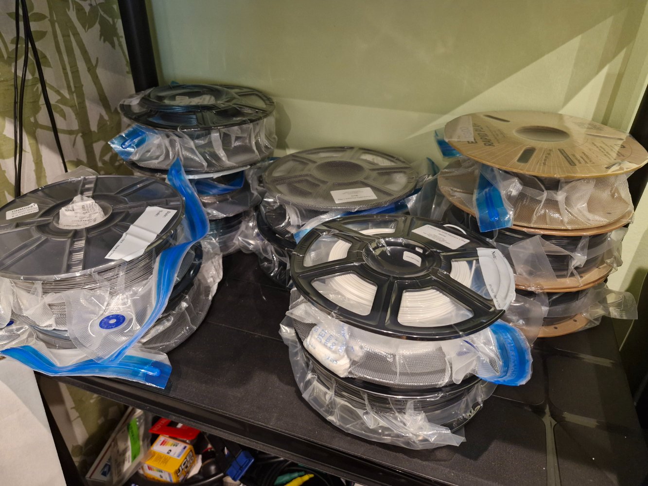 I had to build a shelf to hold mine. Bearing in mind they are 1kg each, it had to be strengthened!Another 3x spools of filament for my new 3d printer. That got out of hand quickly
