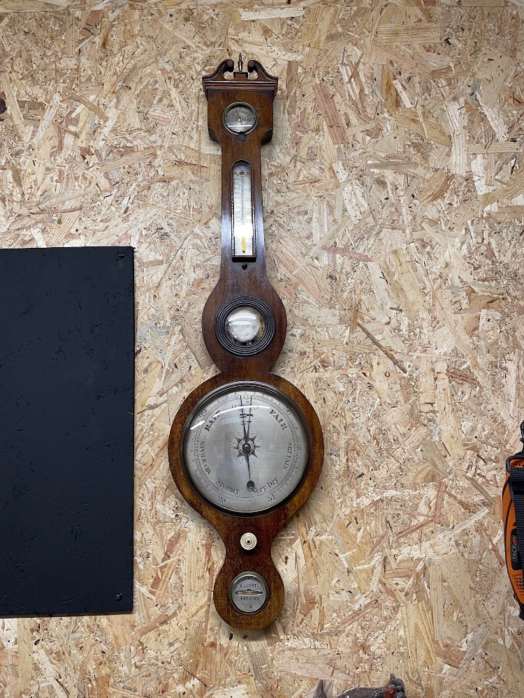 Old barometer, maybe getting on for around 90 years old. Been in the family for some time and was destined for the charity shop which I wasn’t happy about so it now hangs in my workshop.