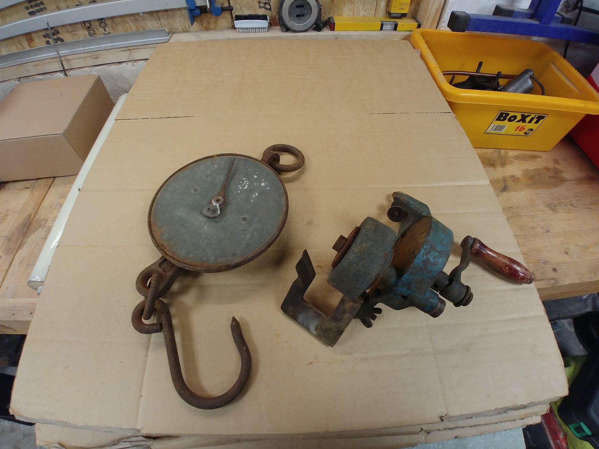 I think the geared sharpener felt quite nice and the scales worked but could do with a good clean up, I didn't see and makers names yet.