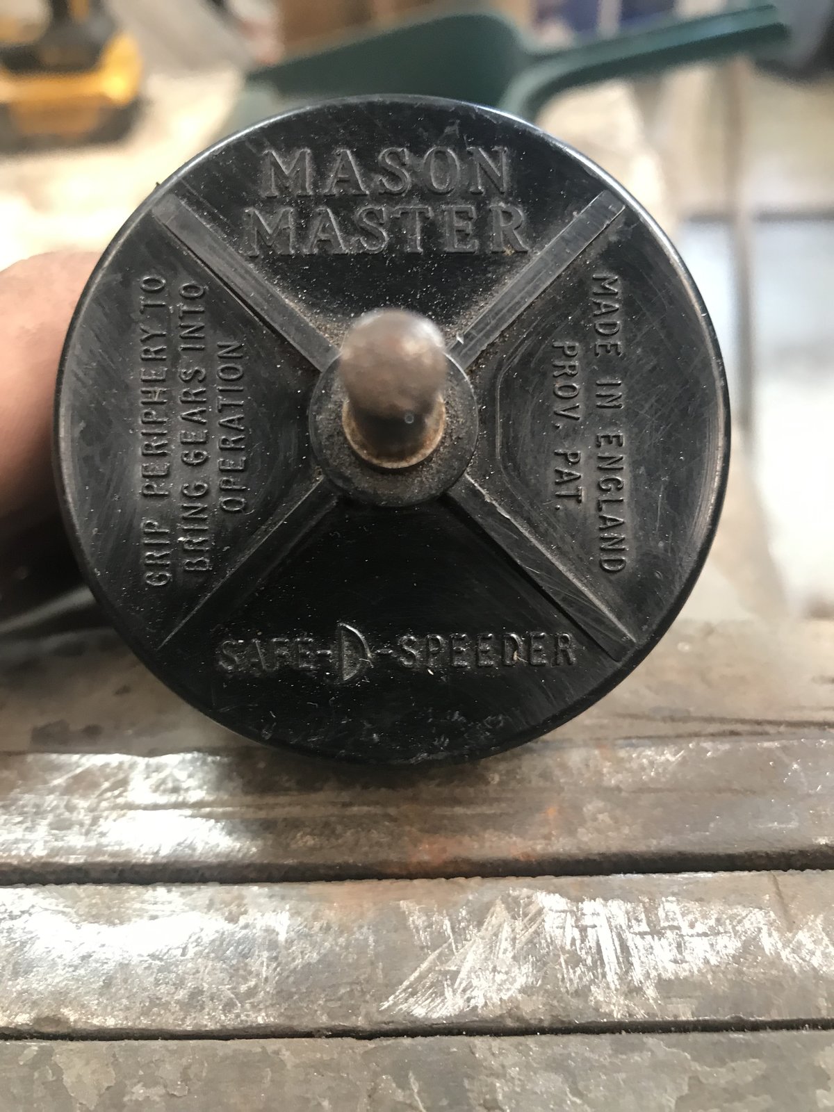A Safe-D-Speeder, you put it in a drill and grab the black section which I’m guessing allows planetary gears to spin inside and move the lower chuck as a slower speed.