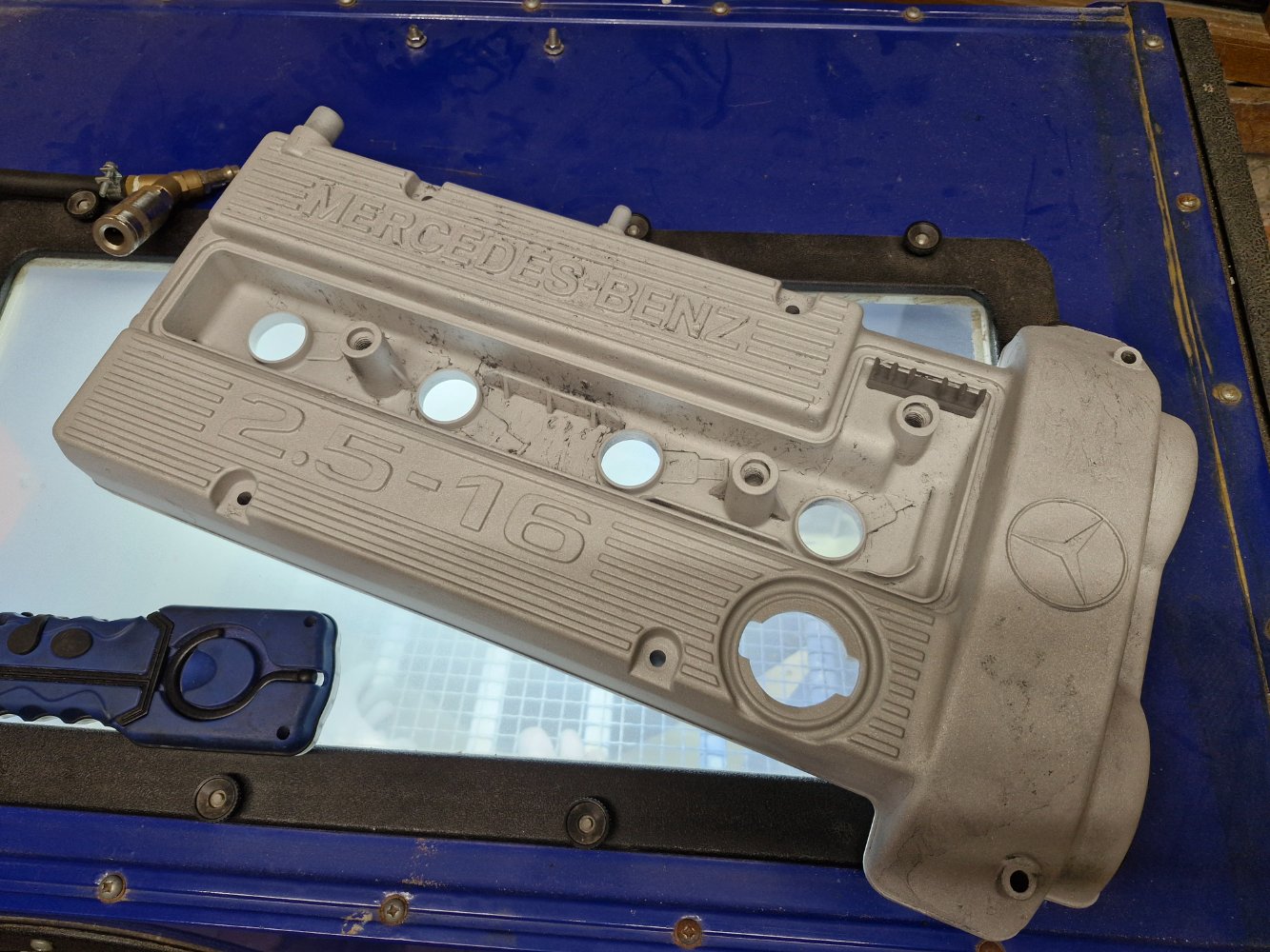 Just finished with this old magnesium valve cover. It had many layers of paint and a super tough original coating of paint.