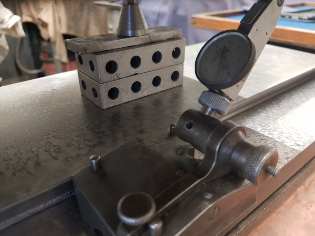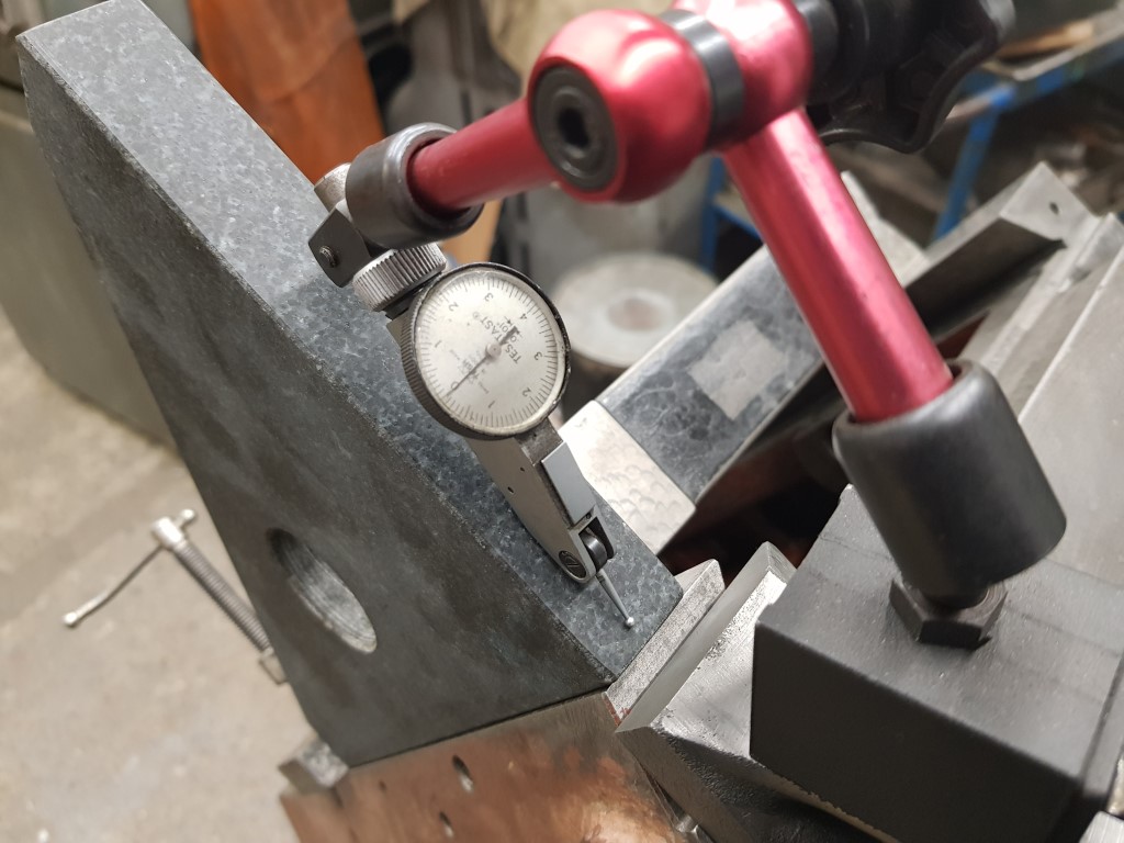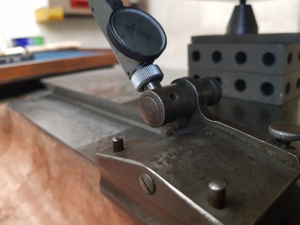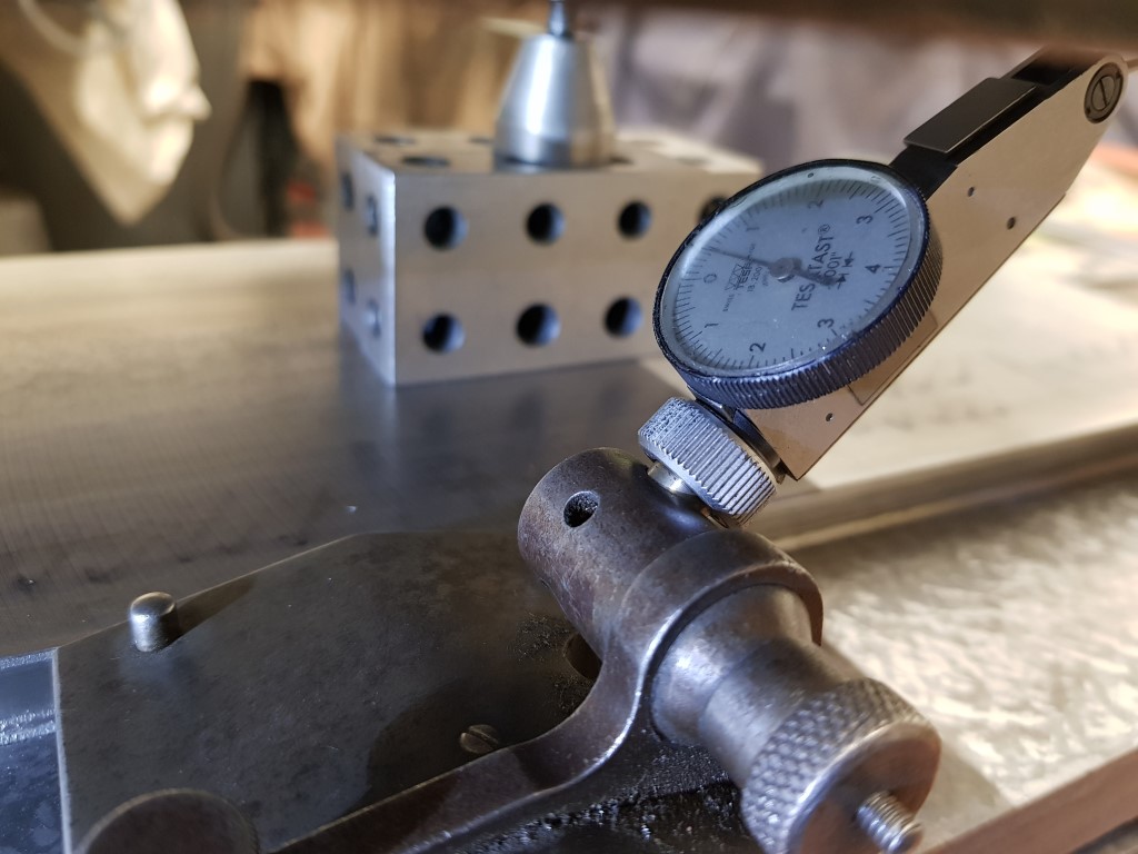 Imagine a cutting tool in the spindle of the dividing head below (with the overarm and outboard support removed). With the two rotational adjustments on the angle plate, you can point the sharp end of the tool at every point of the surface you want to machine.