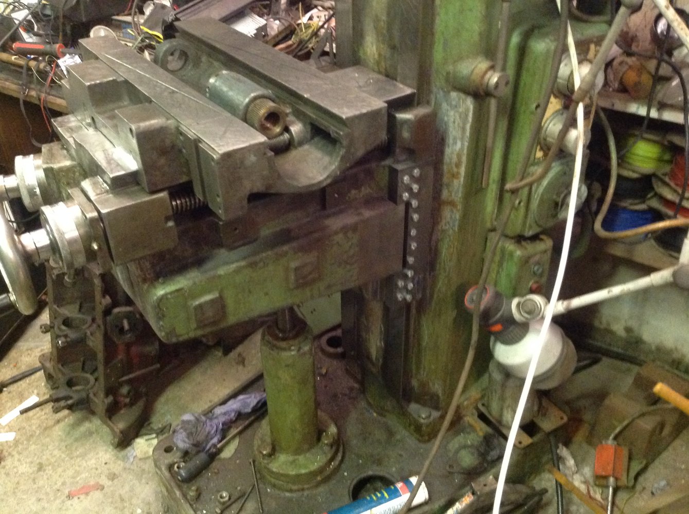 First time it's moved up and down for a while I guess. Need to get some shim,to set the gibs, then check the in/out readings before fitting the table. Happy as a dog with two mills..I decided to have a go at straightening the vertical column lead screw. First time I did it I found I just couldn't get the press on where I wanted it - the machined on collar was in the way. It ended up like a "z".