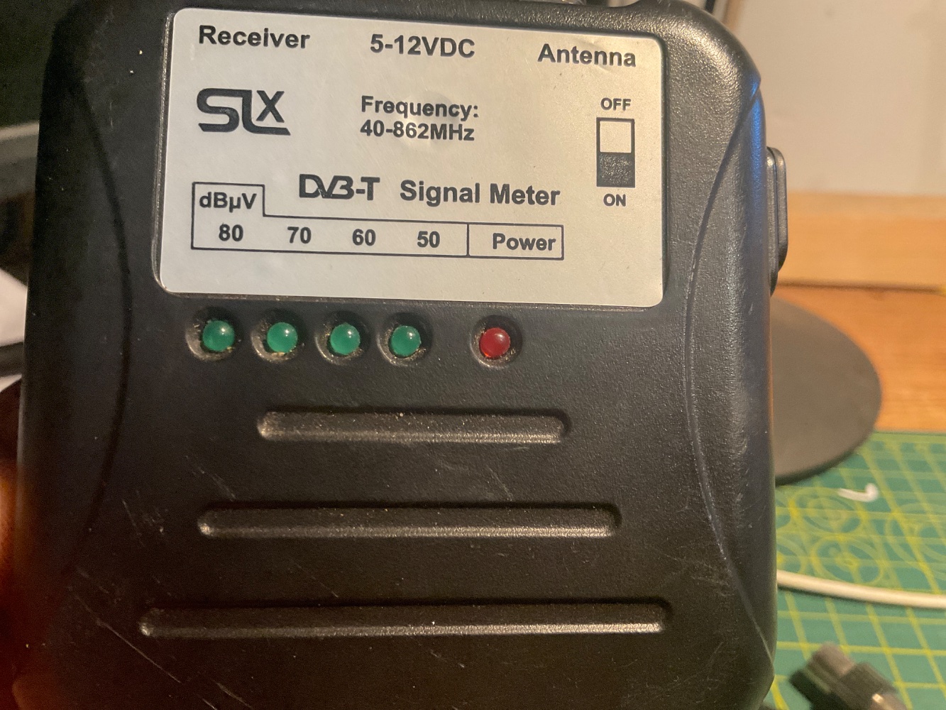 But, swinging the aerial back and forth over 180deg, it didn’t waver from one green light, or 50 dBuV. So, I went back to the compass bearing and tested the TV - all channels booming in nicely, although it was at night we were getting the problem.