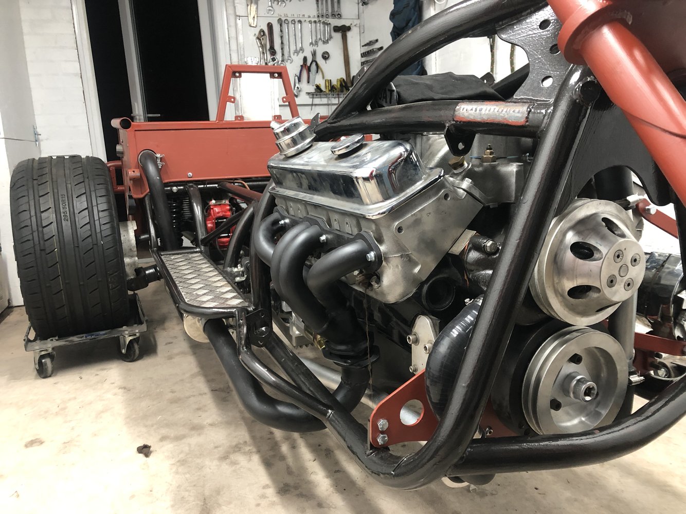 But, I dragged myself into the shed and forced myself to do something. I welded up the backrest/header tank mount. The welding was a pain, my fingers won’t feed the filler rod properly and my other hand shakes holding the trigger button down. Other than that, it stuck metal together.