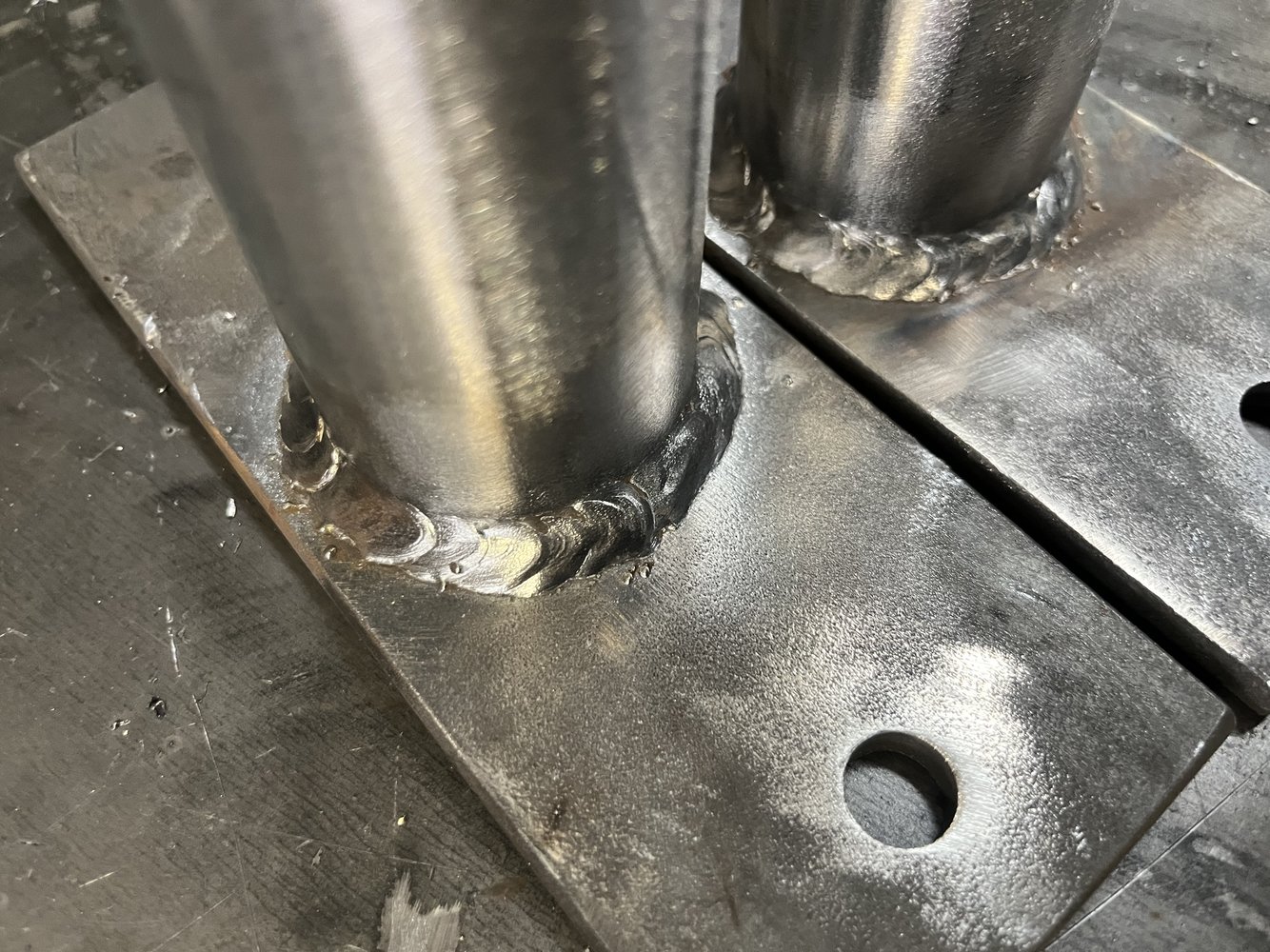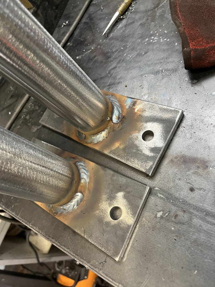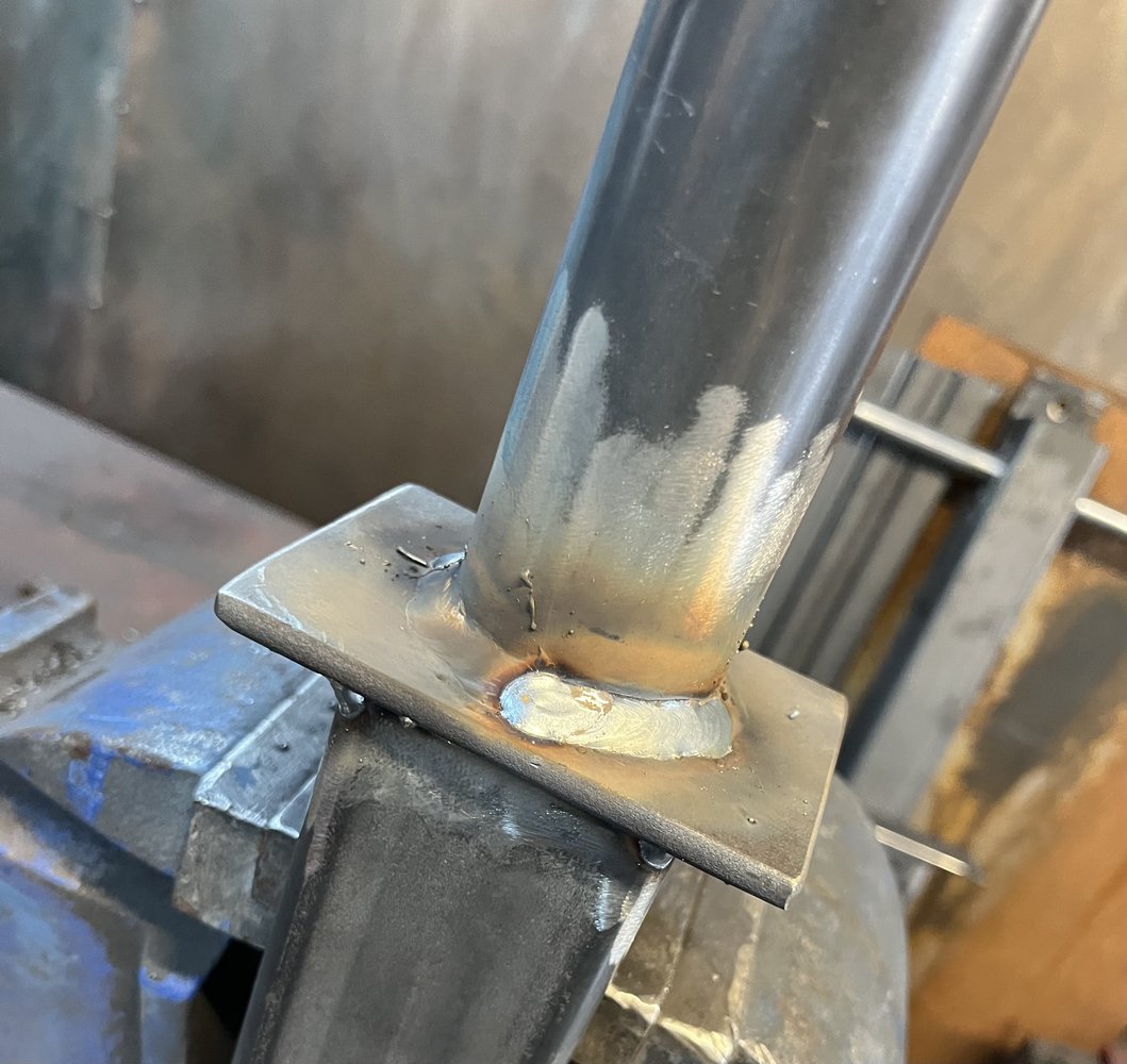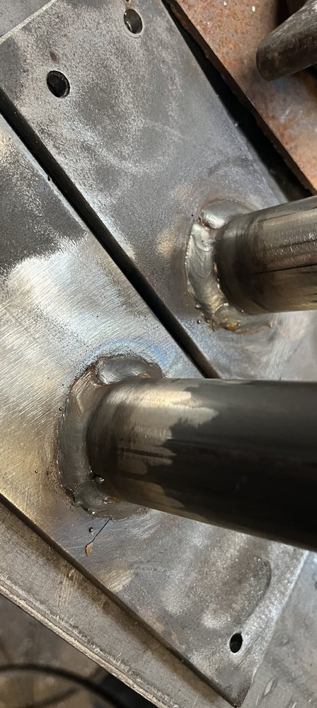 Or do you mean I should weld the full circle in one hit? I struggle to do more than 1/4 that’s all so I do it in 4 pieces I guess if I had some sort of plate that spins could easily do it in 1Are you doing overlapping tacks or it it some sort of weaving movement? Those welds should just be one continuous bead.