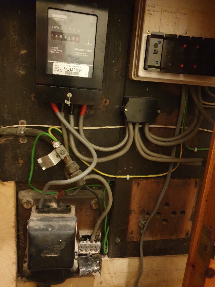 The broken service cutout cover should be sorted by your supplier, the rest needs a new dist board or two.