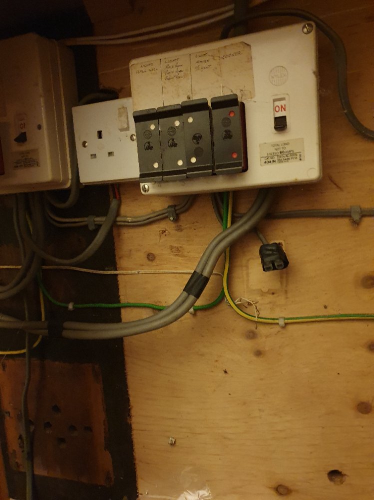 the whole lot should have been rcd protected many moons agoyes i did in the mid 80,s....been a rental since in the hands of a few letting agencys...i now live in it from 2 weeks agoDidn't you look at it when you bought the house?