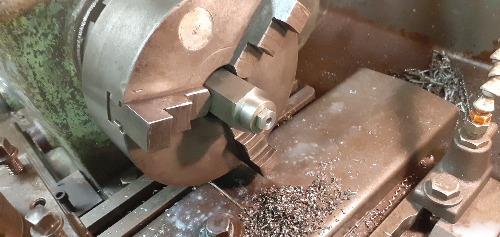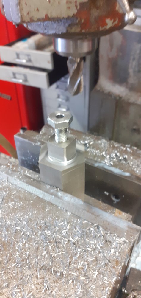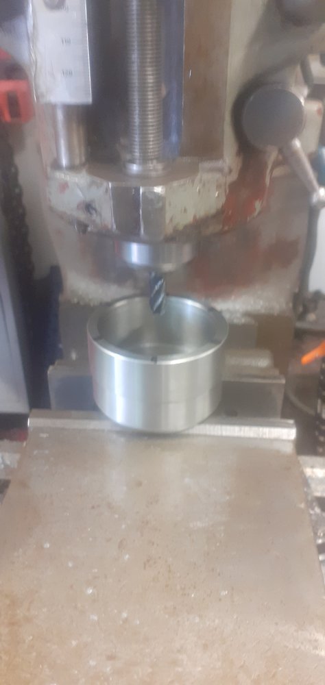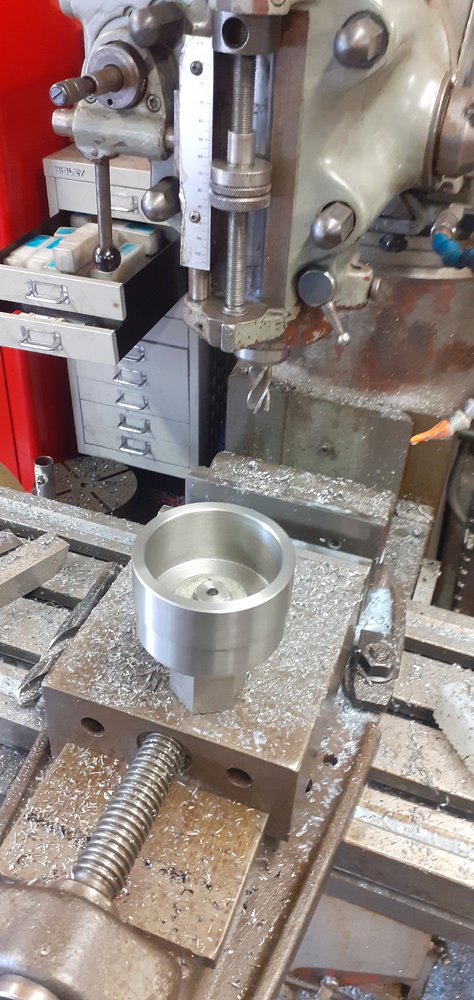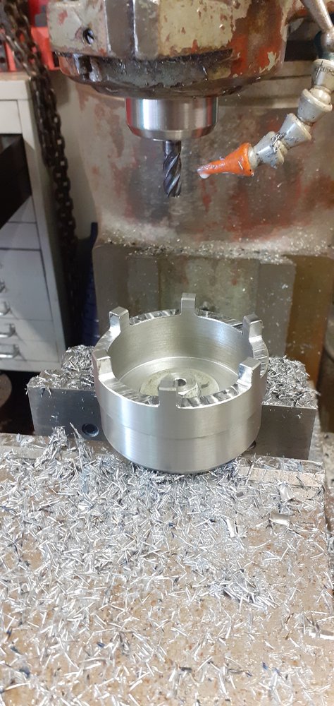 for tightening wheel bearings?Started to make a groove nut socket ,turned and bored out of a 90mm steel bar, milled the 3/4" square drive now I just have to work out the best way of milling 6 equally distance pegs into the face now.