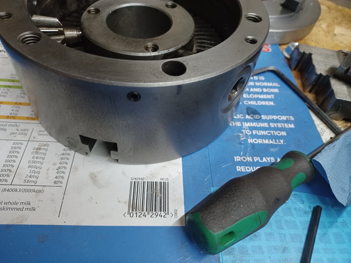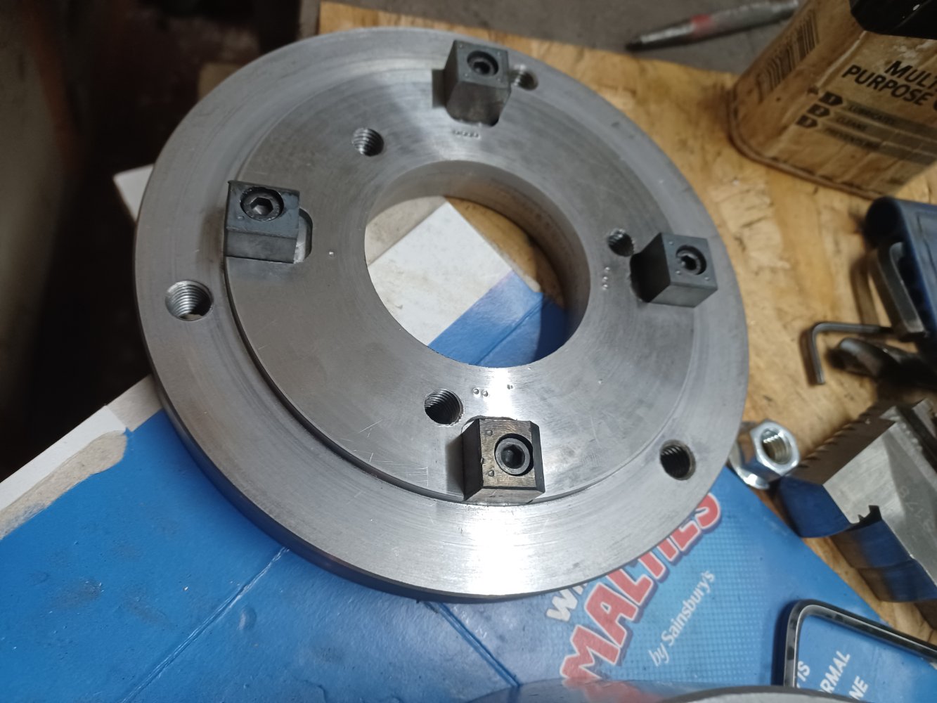 then had to drill 4 holes and tap to m6 in the chuck with no room for error as if anything not at the correct angle moving set screws will ramp the opposing set and be impossible to set