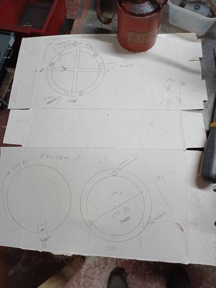 Cereal box calculations for pcd drilling on the mill there was only enough room to use M6 grub screws for adjustment