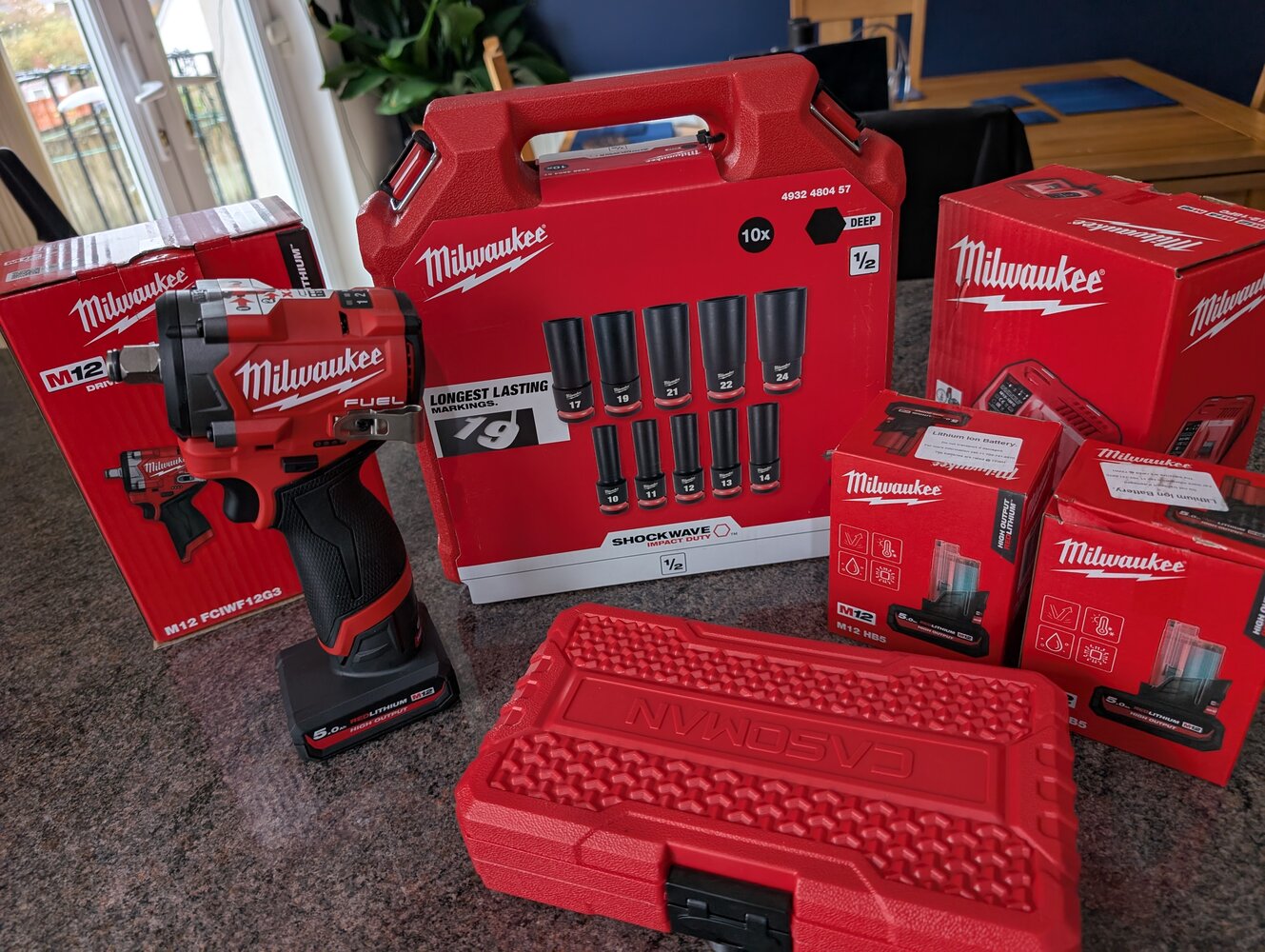 Update on Scewfix: I phoned them and they were very helpful: I just need to order and pay for the items and they will all be delivered to Oban, when I go up to collect they will refund me and I can use the gift card - getting a fast charger, 2 x Milwaukee 6Ah batteries, Milwaukee deep impact socket set and Milwaukee Impact adaptors.