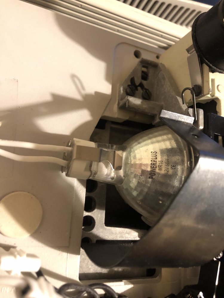 Got a minor job repairing a movie projector. Lamp connector block has disintegrated I suppose with heat and old age. So I thought if I got a MR16 lamp holder that it would sort the problem but I was wrong because with it in place it is too bulky and I can't get the projector cover back on.