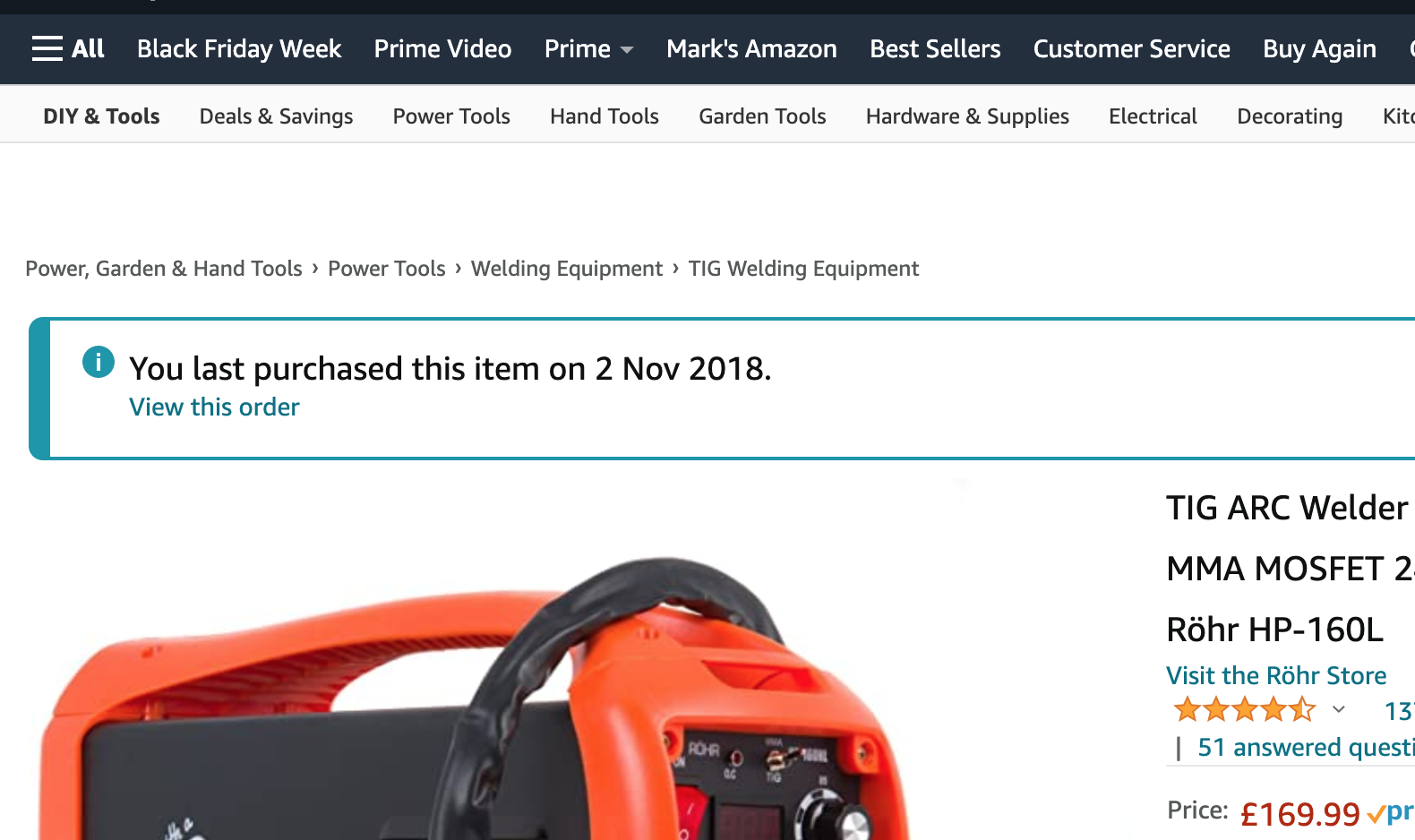 It was £139.99 when I bought it; the price seems to be going the wrong way. Been there; done that; no thank you. I'd be looking at the Sherman or something non-Rohr at least. Union Mart (who sell Rohr) give you £5 back for a five star review (I got the form when I received the welder). Be careful of that and those five start reviews like "quick delivery", "looks great", "husband is very happy" - yep, but who has actually used it.