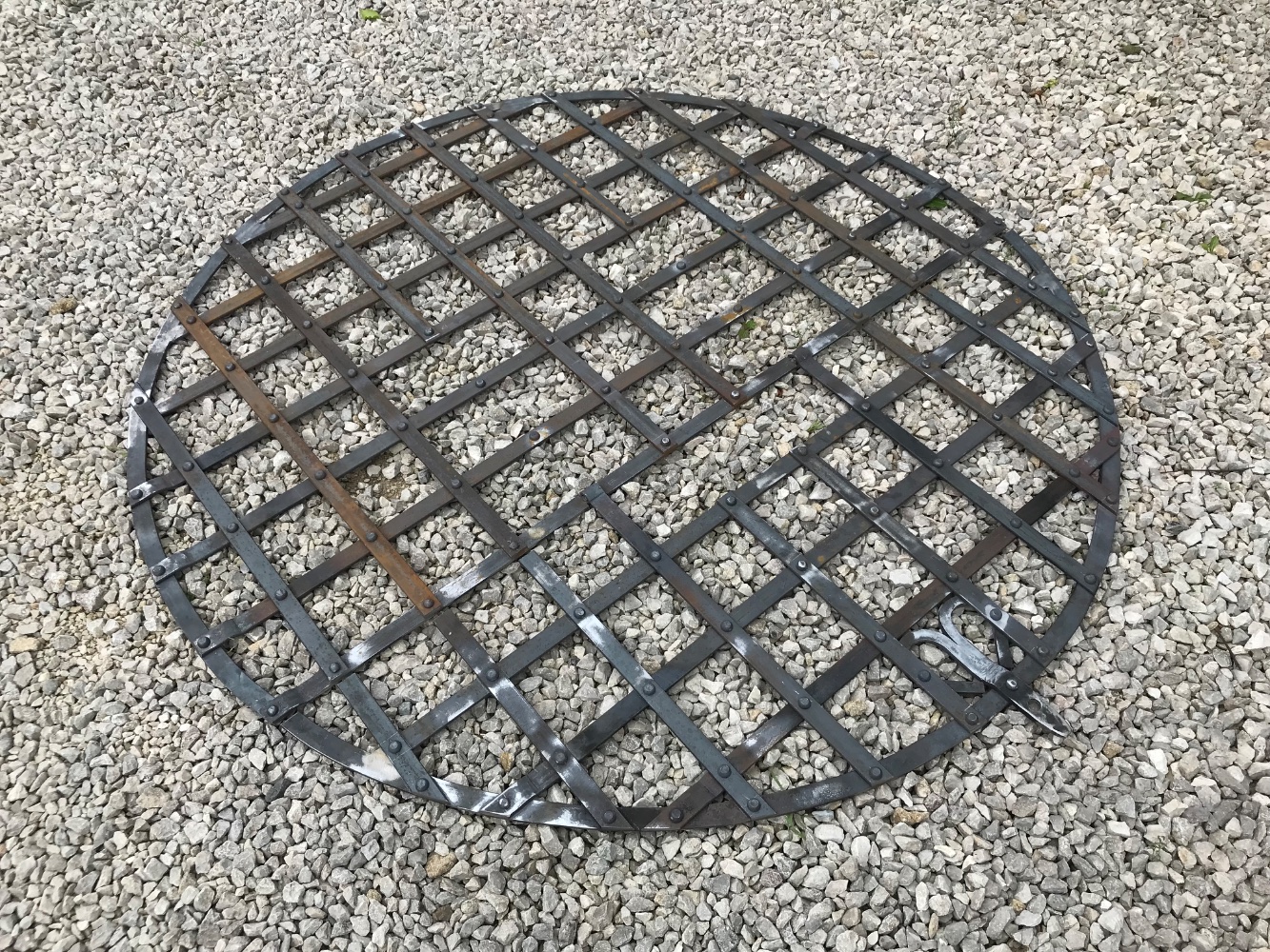 Has anyone done any decent grates for wells? Do I just weld something up and be done with it? The easy solution. Or do I make more of an effort and have a go at making a rivetted or morticed affair? Or something else? Either way, I might need to make it in two parts because of the upstands. I won't need access so there is no need for a gate / door.
